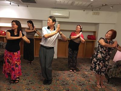 2016.7.24.边乾晋大师应邀向美国费城好朋友老人活动中心会长,副会长及负责人,传授动法。