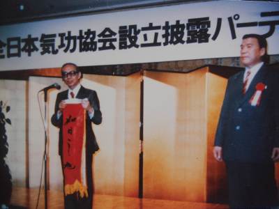 1986.11边治中大师应日本外务省的邀请参加全日本气功协会成立大会, 会长南博向边治中赠旗